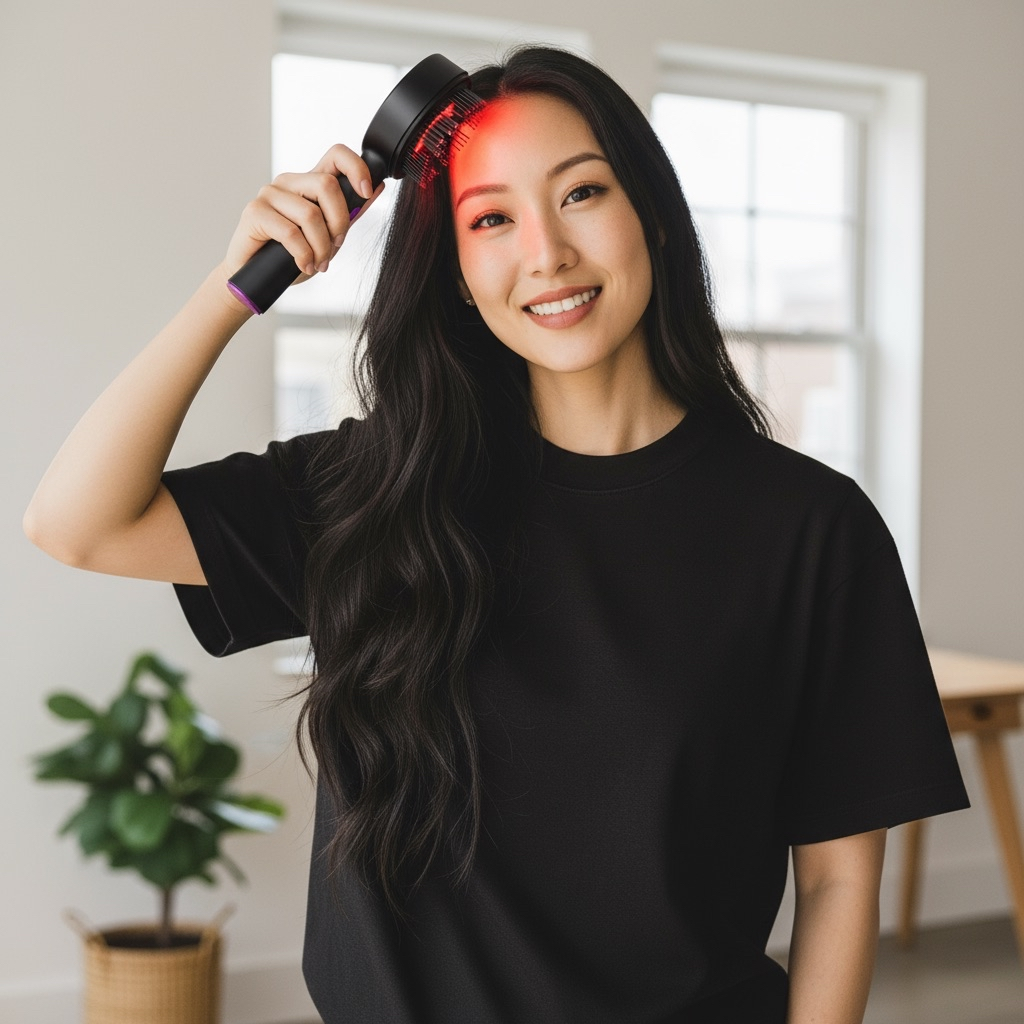 stop watching your hair disappear. this isn't just a brush; it's a growth stimulator. infrared light and massage awaken follicles for visibly thicker, fuller, head-turning hair.